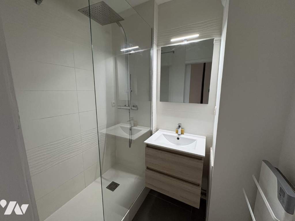 Entrée, deux chambres, placards, salle d'eau, cuisine équipée-aménagée ouverte sur salon-séjour