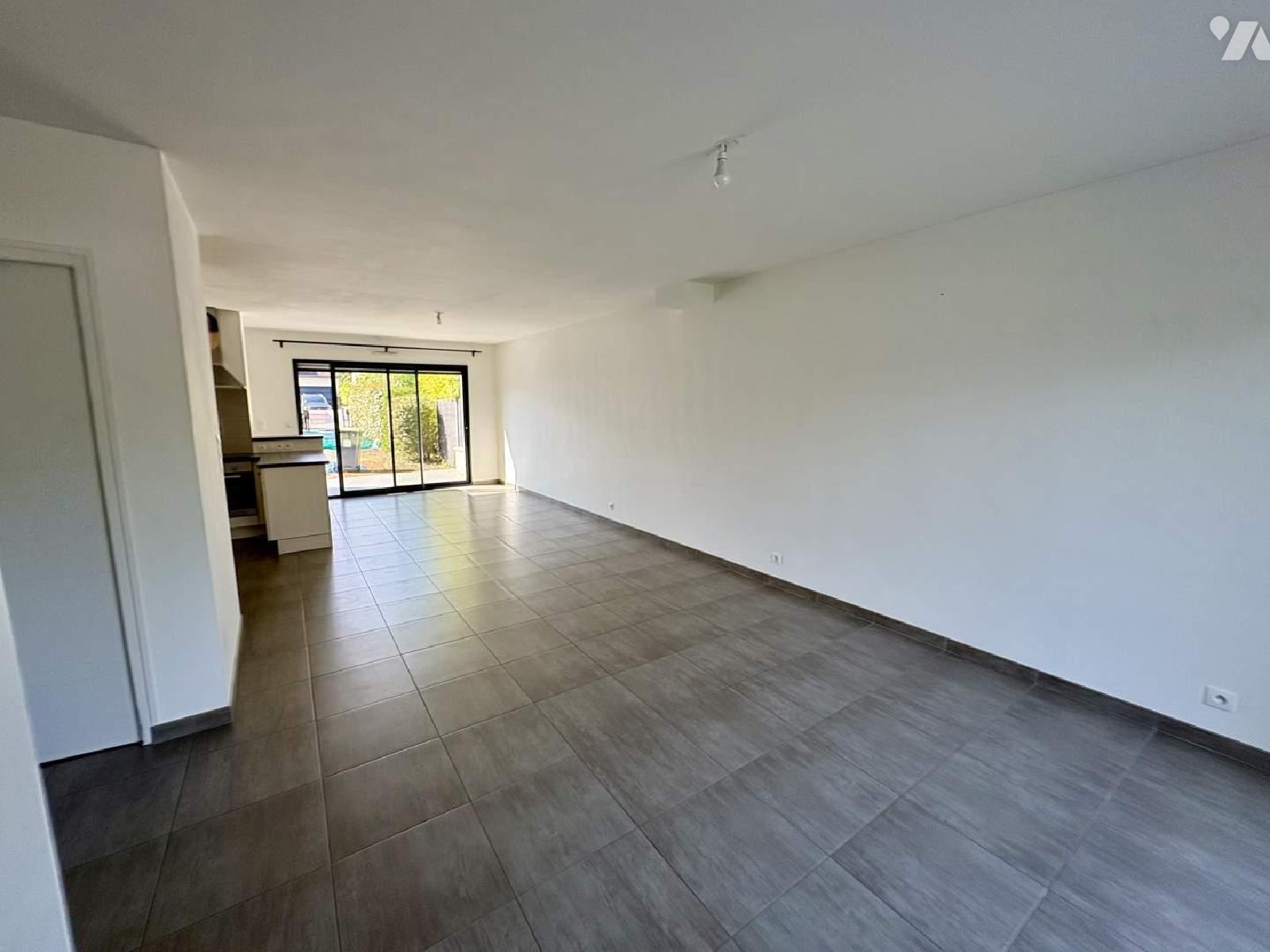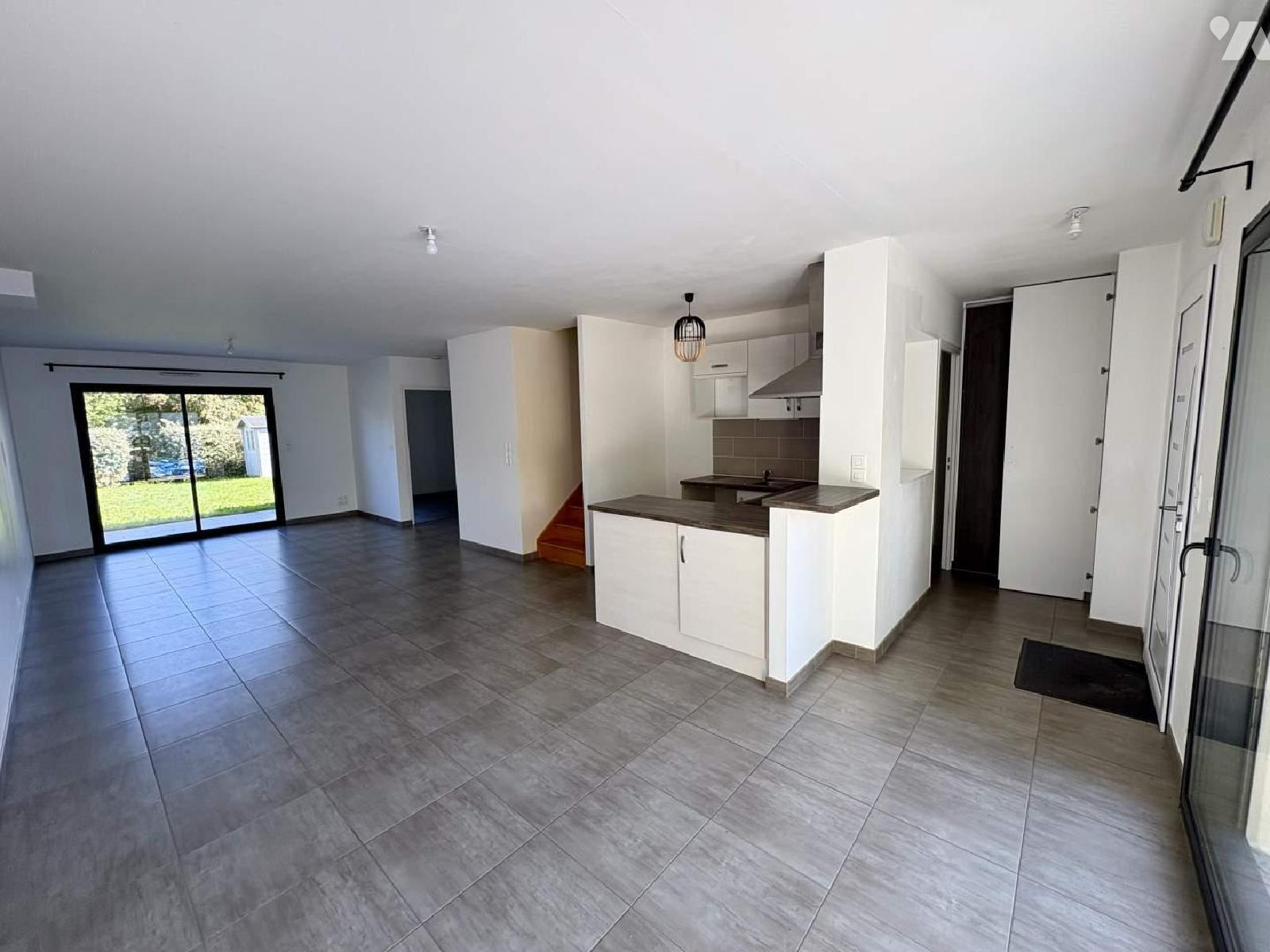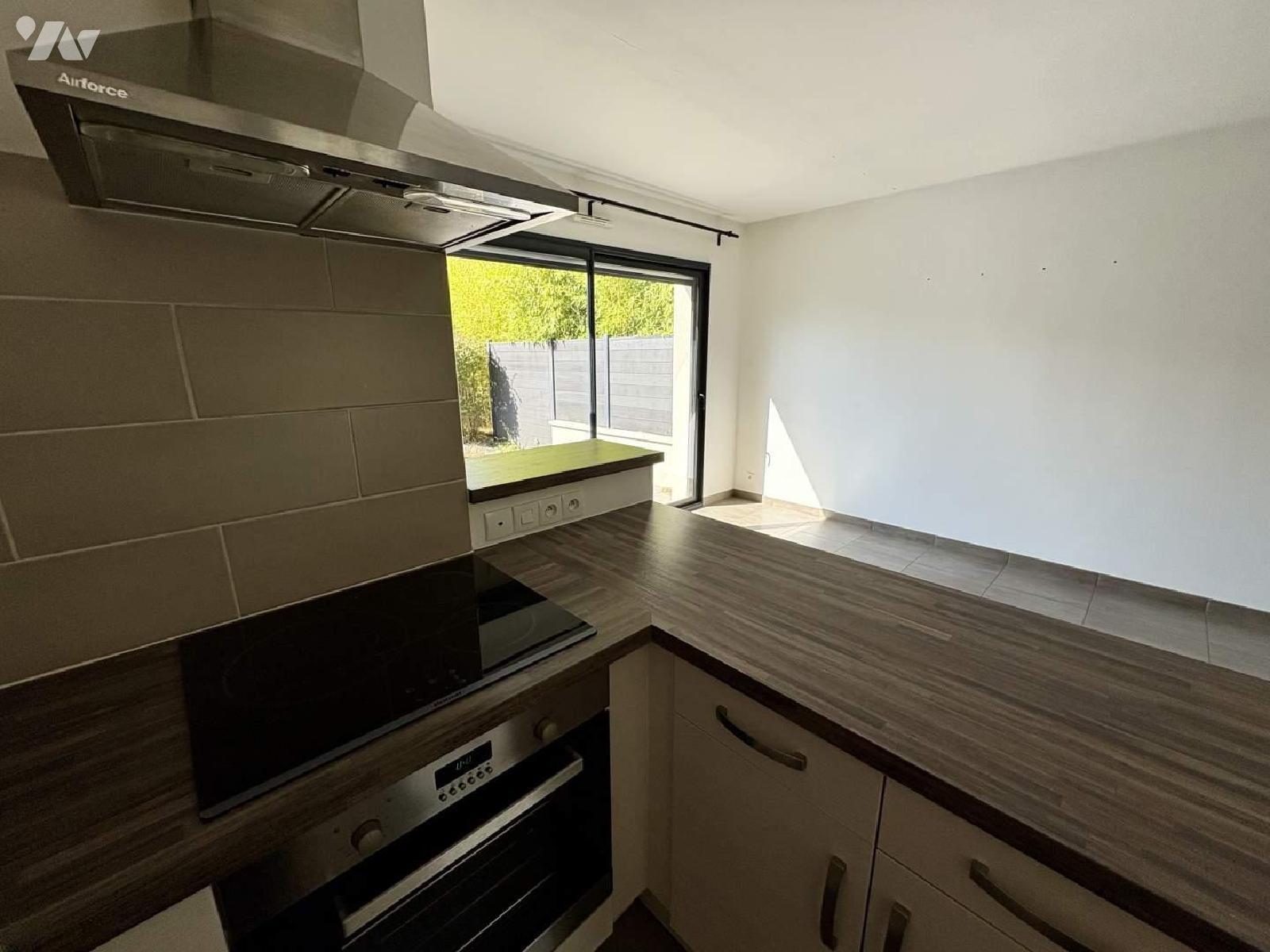 Entrée avec placards, buanderie,/cellier, cuisine ouverte sur salon-séjour, chambre de plain-pieds, salle d'eau, WC